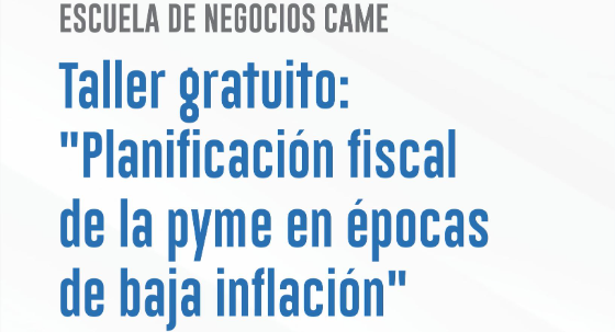 La Confederación Argentina de la Mediana Empresa (@redcame), a través de su Secretaría de Capacitación, invita a empresarios y profesionales a participar del segundo taller «Planificación fiscal de la pyme en épocas de baja inflación».